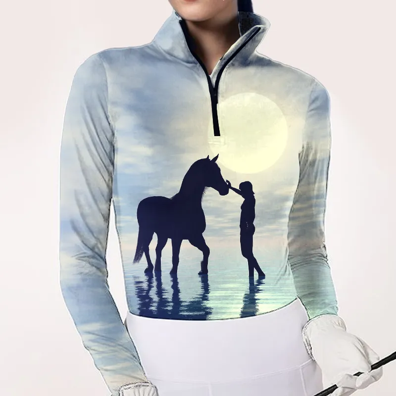 Women's Riding Style Horse&Girl Print Long Sleeve Casual Shirt
